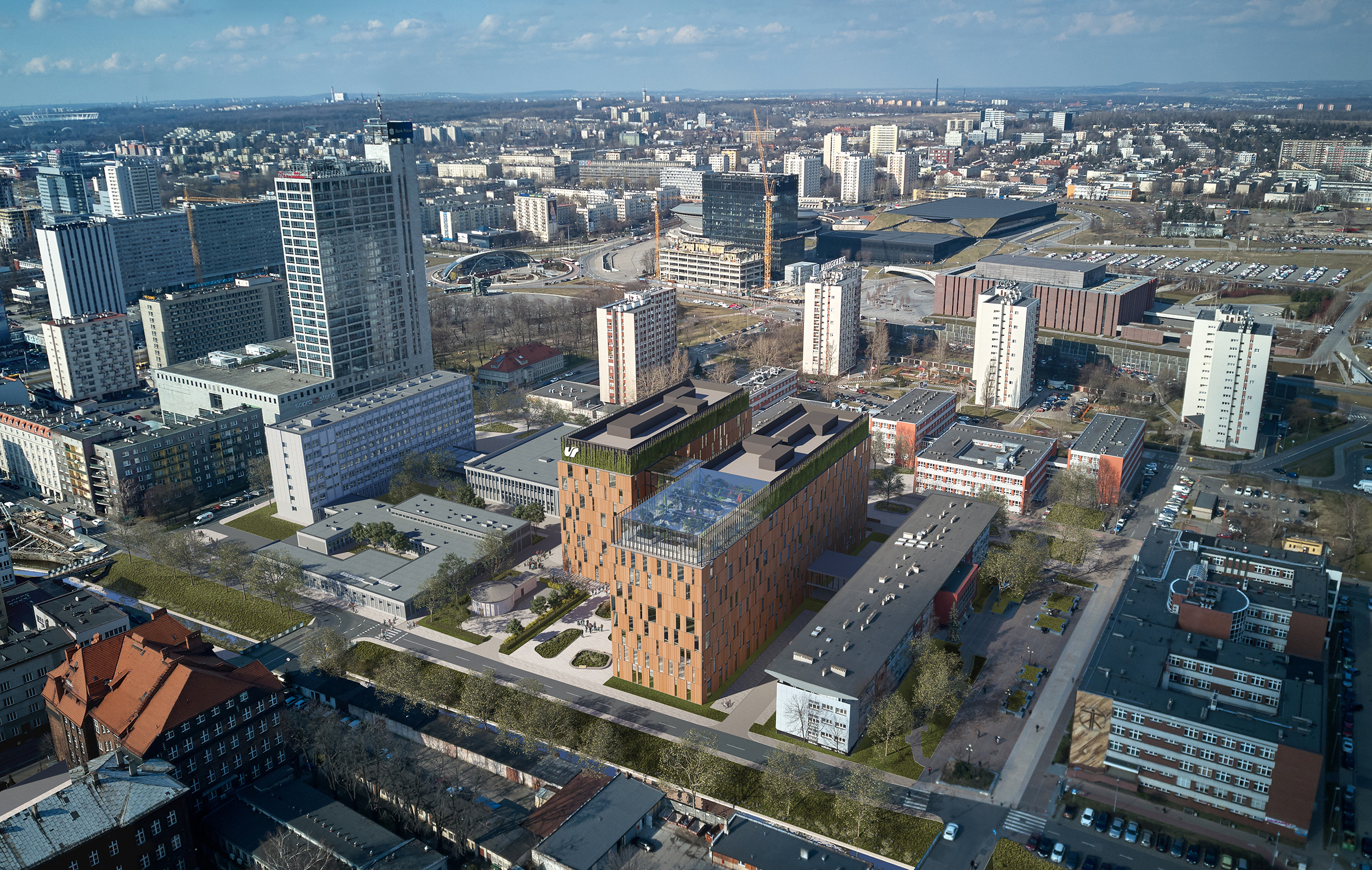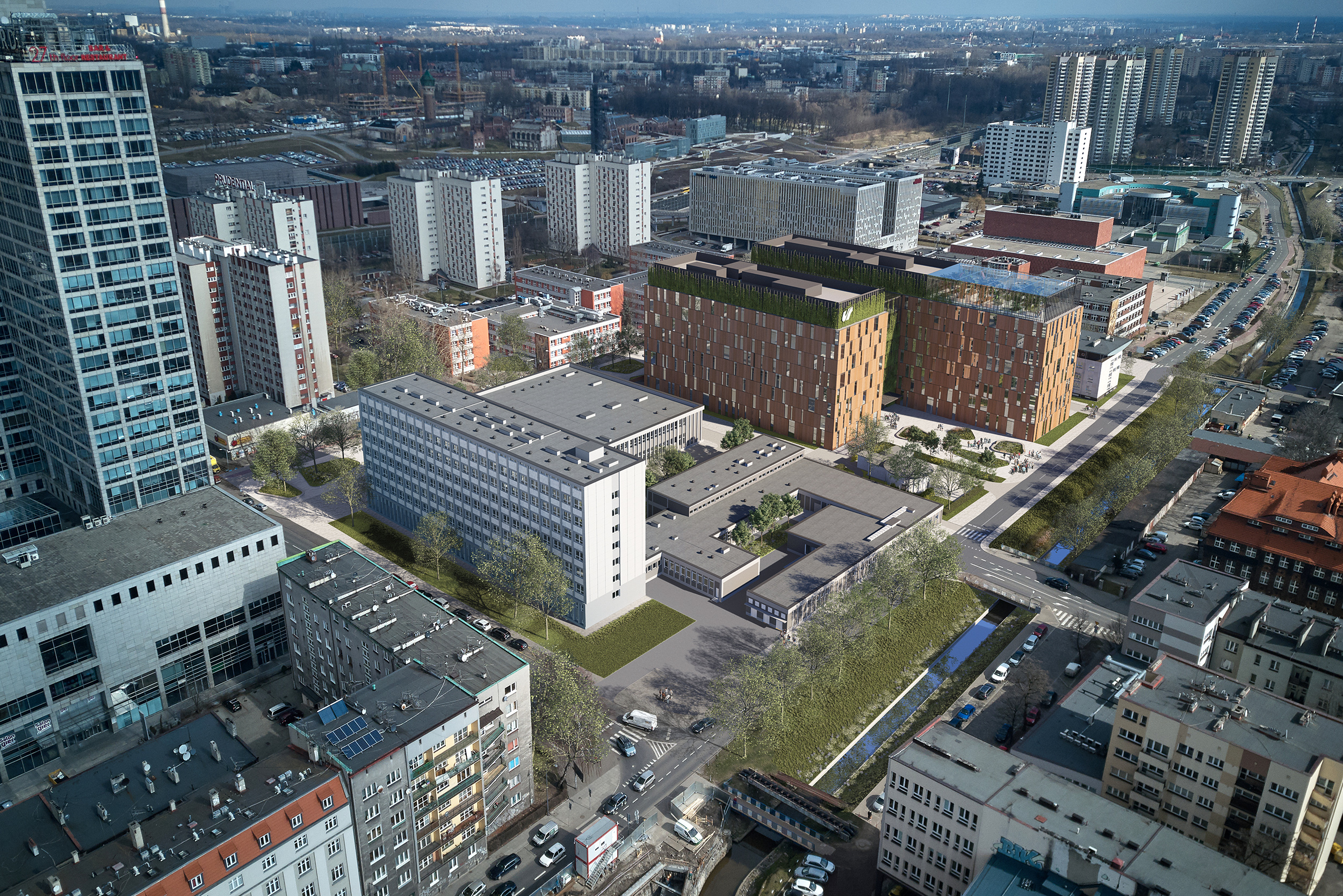 Śląskie Interdyscyplinarne Centrum Chemii w KatowicachKoncepcja budowy Śląskiego Interdyscyplinarnego Centrum Chemii w Katowicach Powierzchnia: ok. 34 000 m2 Projekt: 2020r. obiekty uzytecznosci publicznej22 K